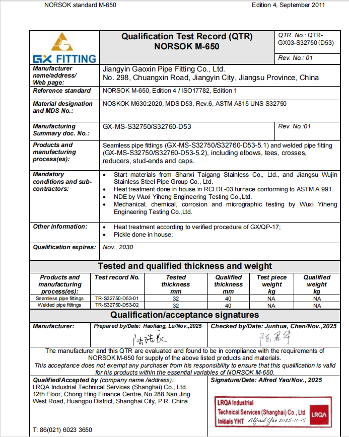 Otthon / Hírek / Céges hírek / Büszkén jelenti be: NORSOK M-650 tanúsítványt szerzett öt kulcsfontosságú anyagra