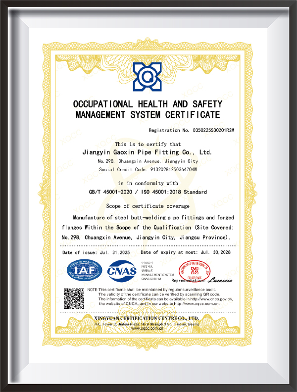 Megfelel a nemzetközi és ipari szabványoknak, például ASME B16.9, GB/T12459, EN10253, JIS B2311, DIN2615, ANSI, GOST stb., és támogatja a testreszabott gyártást.