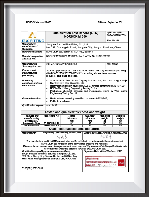 Cégünk sikeresen megszerezte a Ts (nyomáscső-alkatrész gyártás) gyári előregyártási tanúsítványt, és képes a csővezetékek integrálására. A csavarok, anyák, tömítések és karimák illesztésétől a csővezetékek előregyártásáig a bőséges ipari lánc erőforrások biztosítják az ügyfelek számára az integrált szolgáltatásokat, a helyszíni költségek megtakarítását és a szállítási időt.